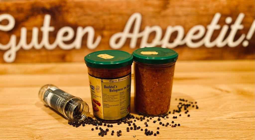 Bestellen Sie noch heute Ihre Bolognese im Glas (400g) im Onlineshop der Metzgerei Bechtel – für ein schnelles, köstliches Essen, das schmeckt wie frisch gekocht!