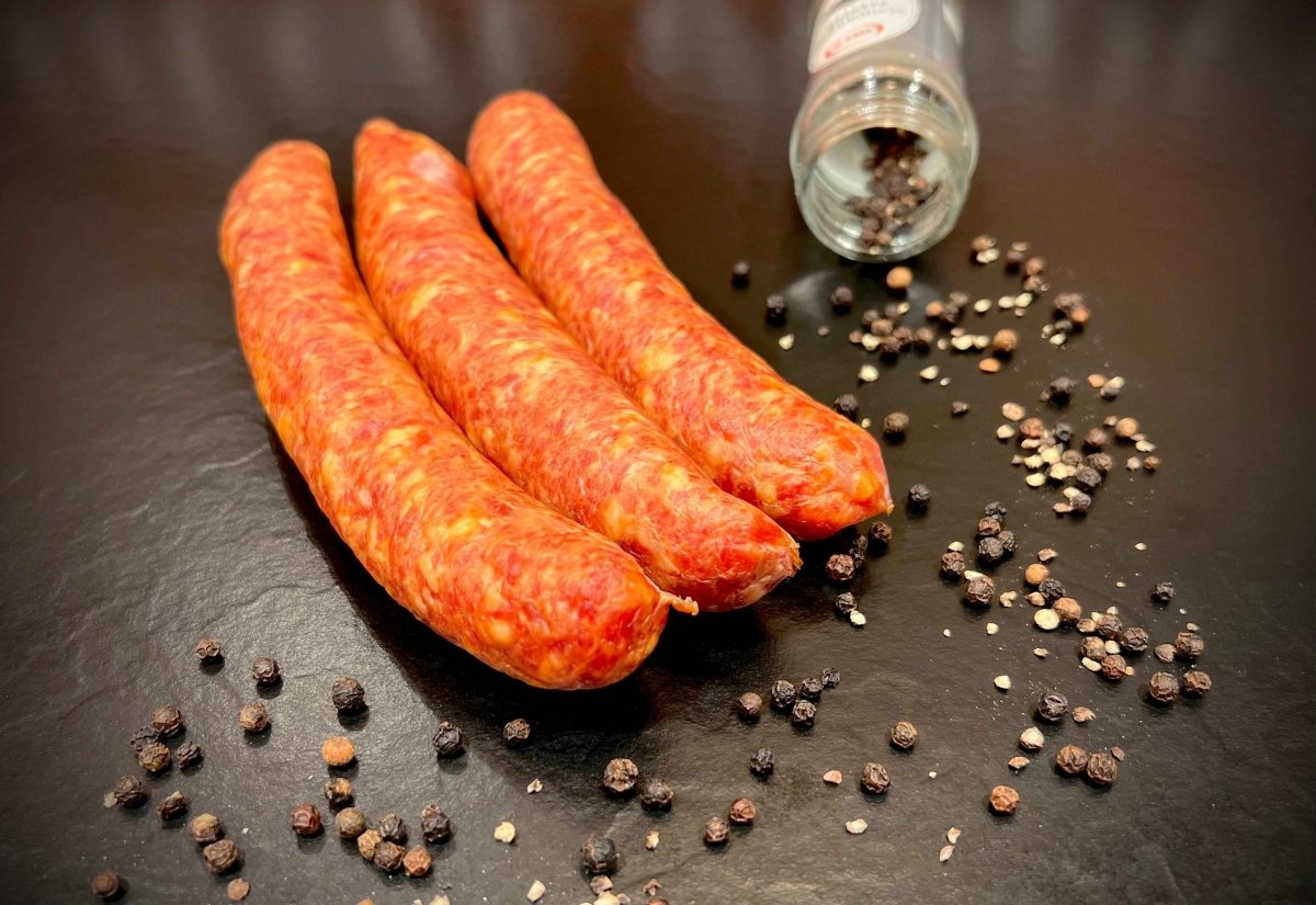 Unsere Polnische ist eine traditionelle Rohwurst, die mit ihrem unverwechselbaren, würzigen Geschmack überzeugt. Diese Spezialität der Metzgerei Bechtel wird nach original polnischer Rezeptur aus hochwertigem Schweinefleisch hergestellt und mit einer fein abgestimmten Gewürzmischung veredelt. Ob heiß, kalt oder leicht gebraten – die Polnische passt perfekt zu jeder Gelegenheit.