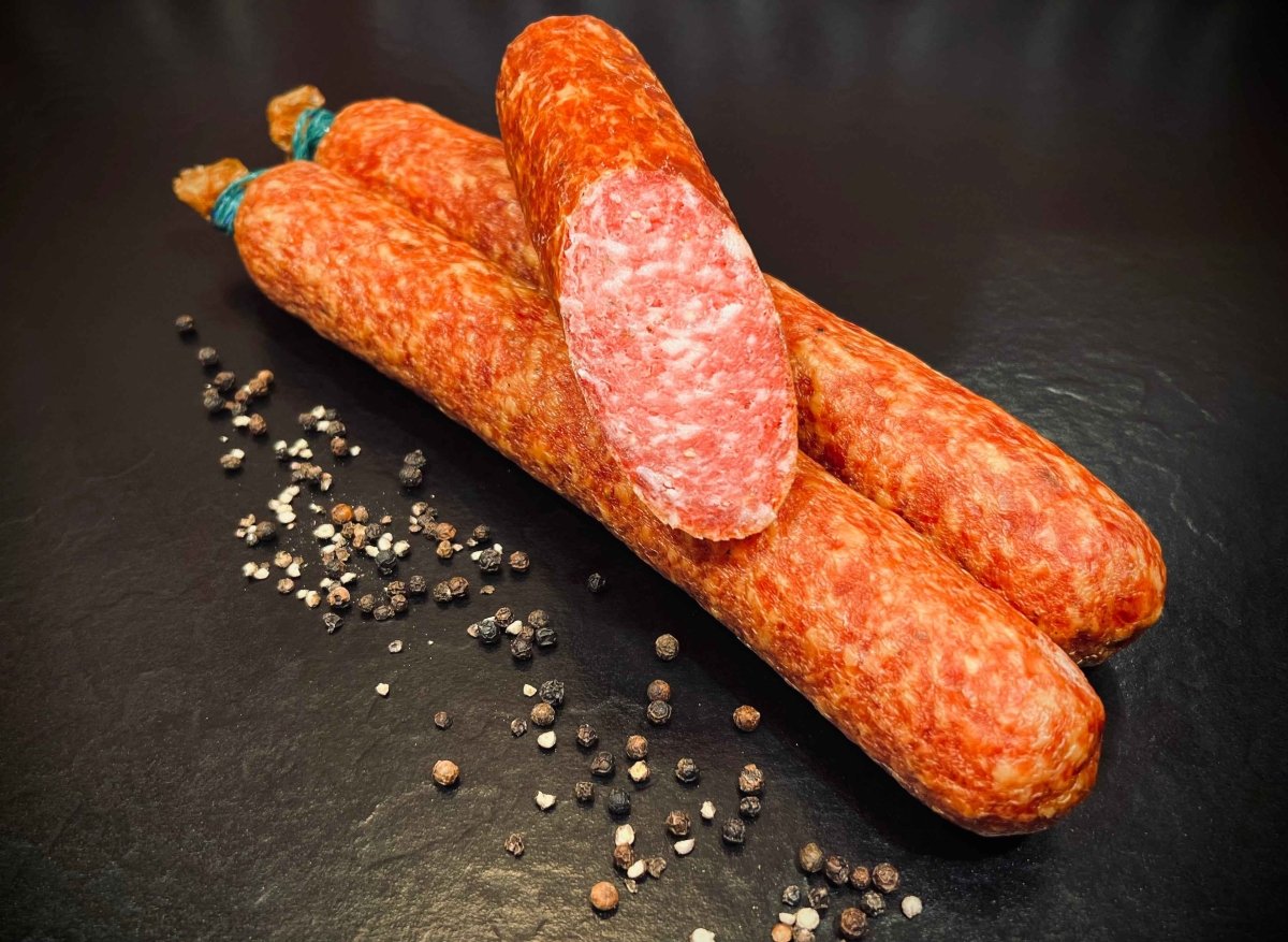Willkommen bei der Stracke Rote - Nordhessische Ahle Wurscht g.g.A.! Diese außergewöhnliche Wurst bringt den Geschmack Nordhessens direkt zu Ihnen nach Hause. Die Ahle Wurscht ist nicht nur ein traditionelles Produkt, sondern ein wahres Stück Heimat, das in keiner Küche fehlen sollte. Perfekt für Ihre nächste Grillparty oder als herzhaftes Snack für Zwischendurch.